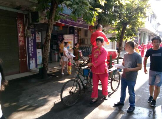 一是组织腰鼓队上街流动宣传。上午8点,社区两委人员与社区腰鼓队敲锣打鼓走上街头,拉上横幅,为过往行人发环保知识宣传单,提高居民群众生活中的环保意识,做到环保从我做起。