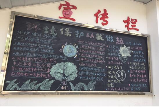 三、黑板报宣传。通过社区宣传栏的黑板,“环境保护从我做起”为主题的黑板报。从环境破坏的危害讲到生活小常识,为大家宣传保护环境的意义。