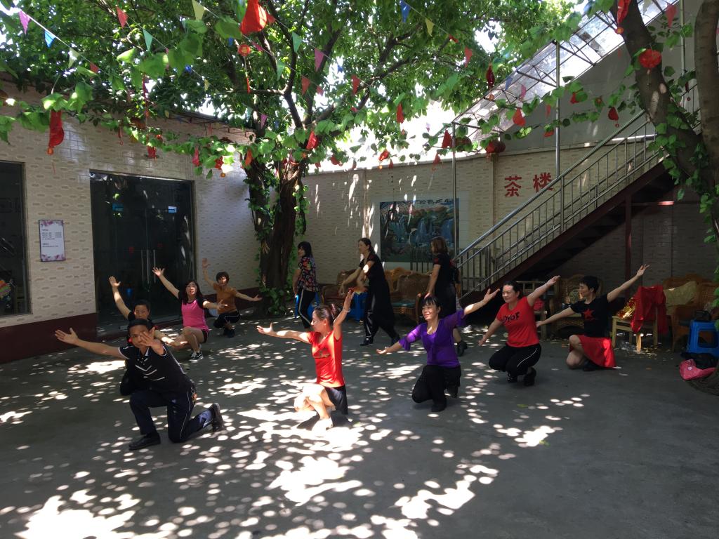bet365官方平台开户白鹤村文艺队队员正在紧张地排练庆“七.一”节目